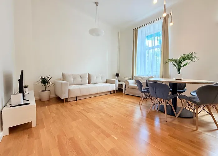 Das 80 m² große Apartment Families & Groups - 4 Bedrooms - Free Parking - Central Location Riga liegt in unmittelbarer Nähe von verschiedenen Sehenswürdigkeiten der Gegend: Riga Stag Party Weekend befindet sich unter anderem etwa 5 Gehminuten von hier entfernt. Die Gäste können den WLAN sowohl für geschäftliche als auch für private Zwecke nutzen.